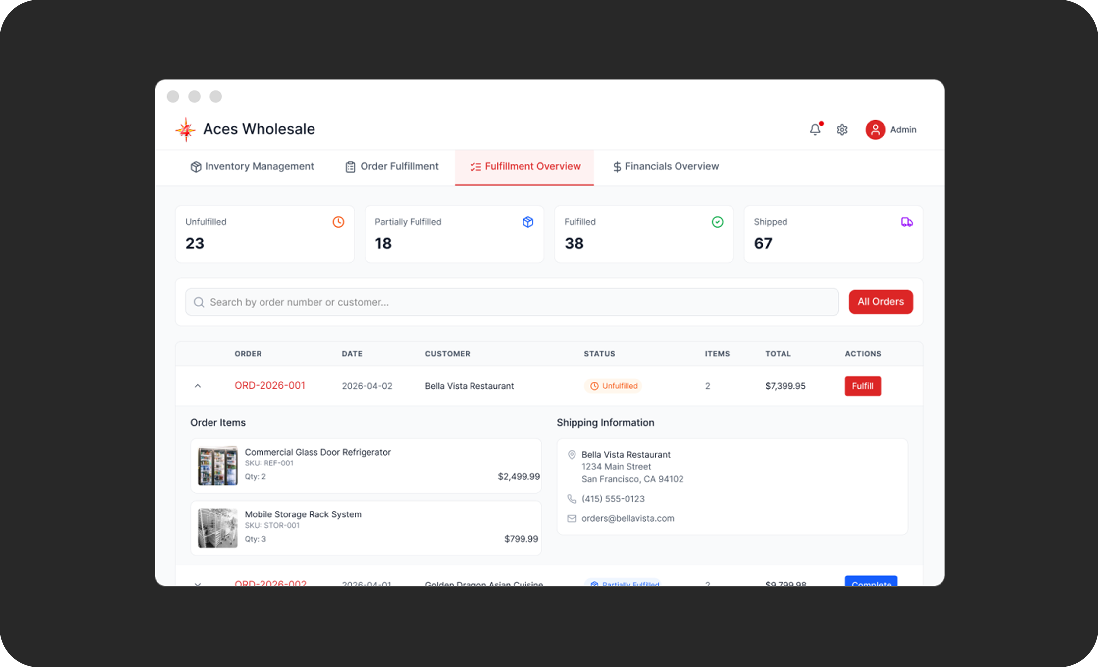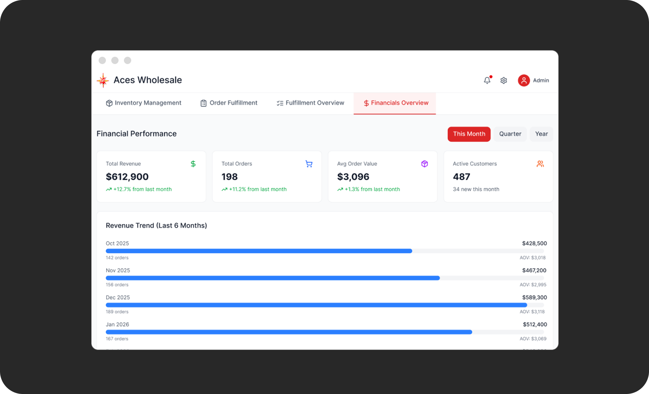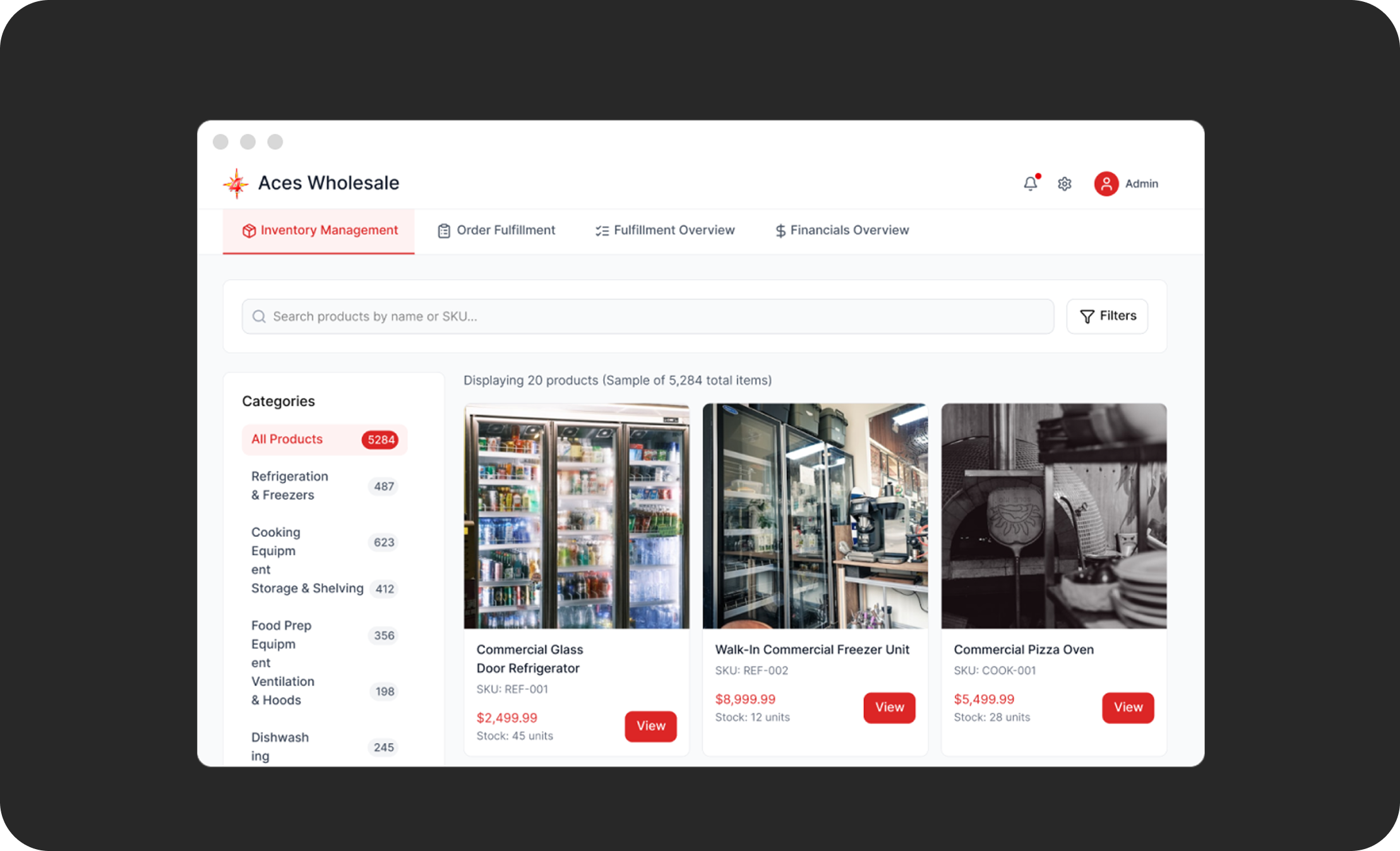 4Aces wholesale platform enabling businesses to browse inventory and complete bulk purchasing workflows online.