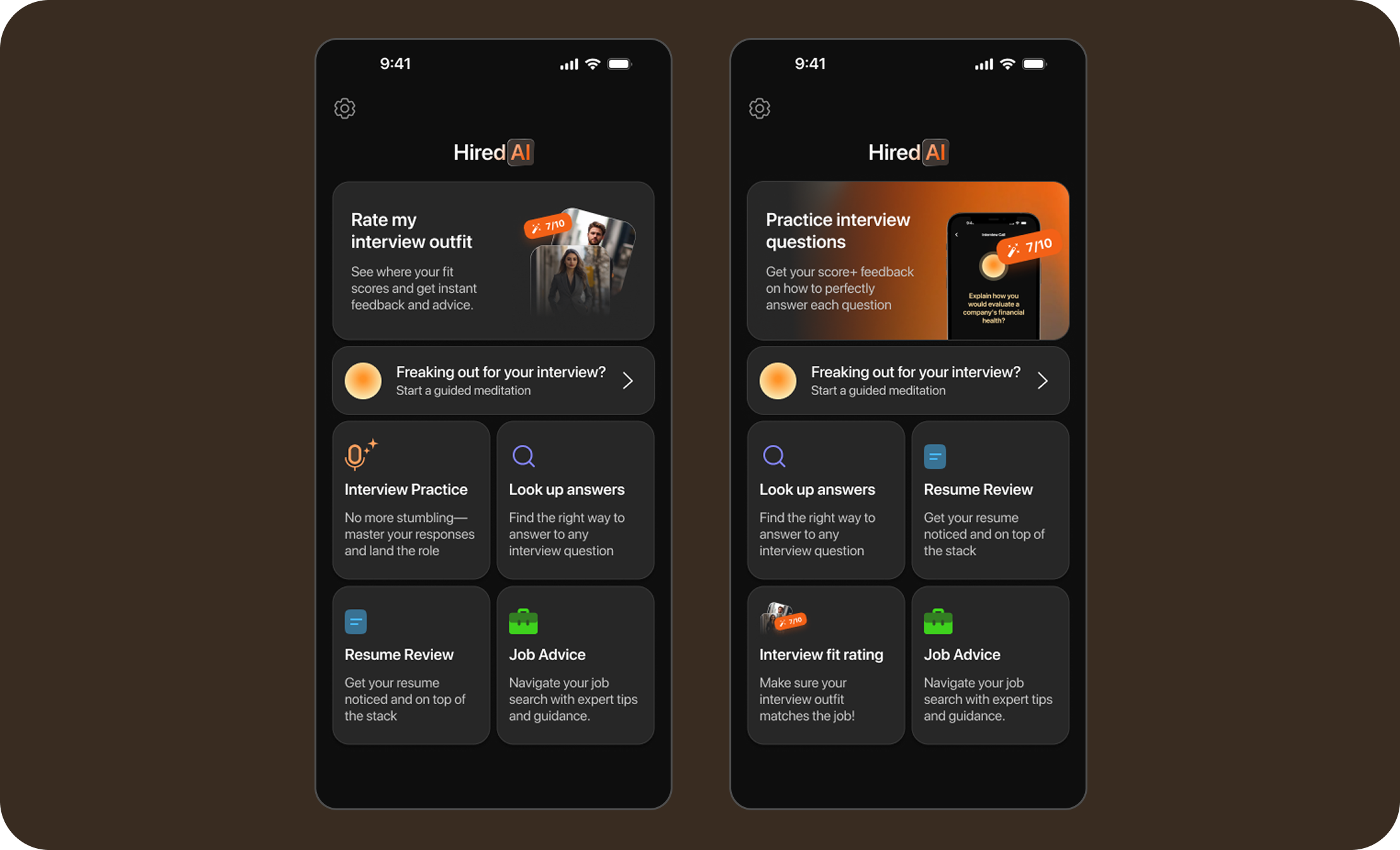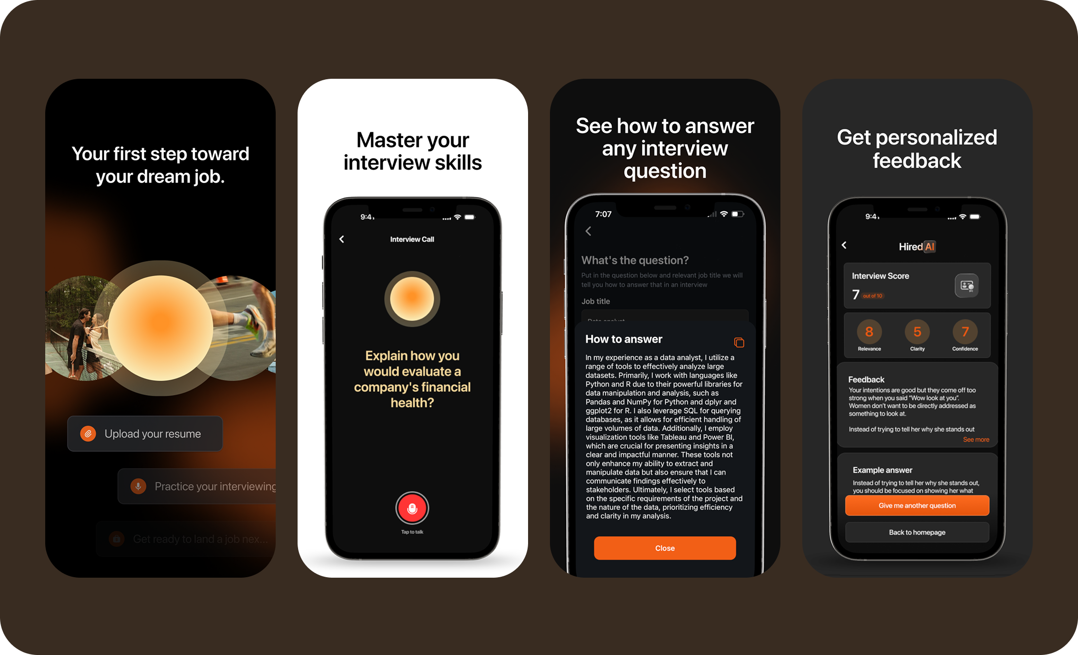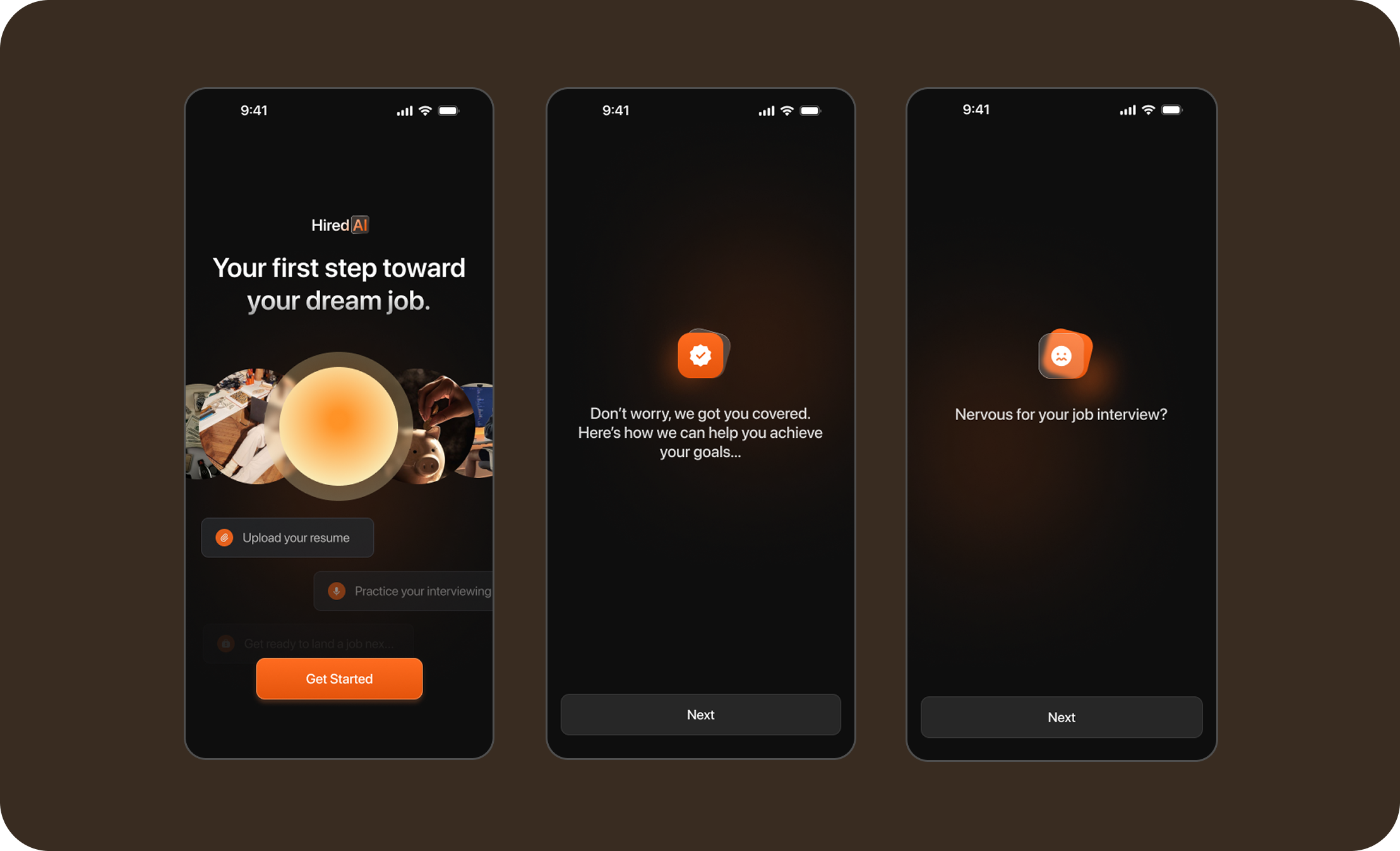 Hired AI mobile platform connecting users with job opportunities through intelligent matching systems.