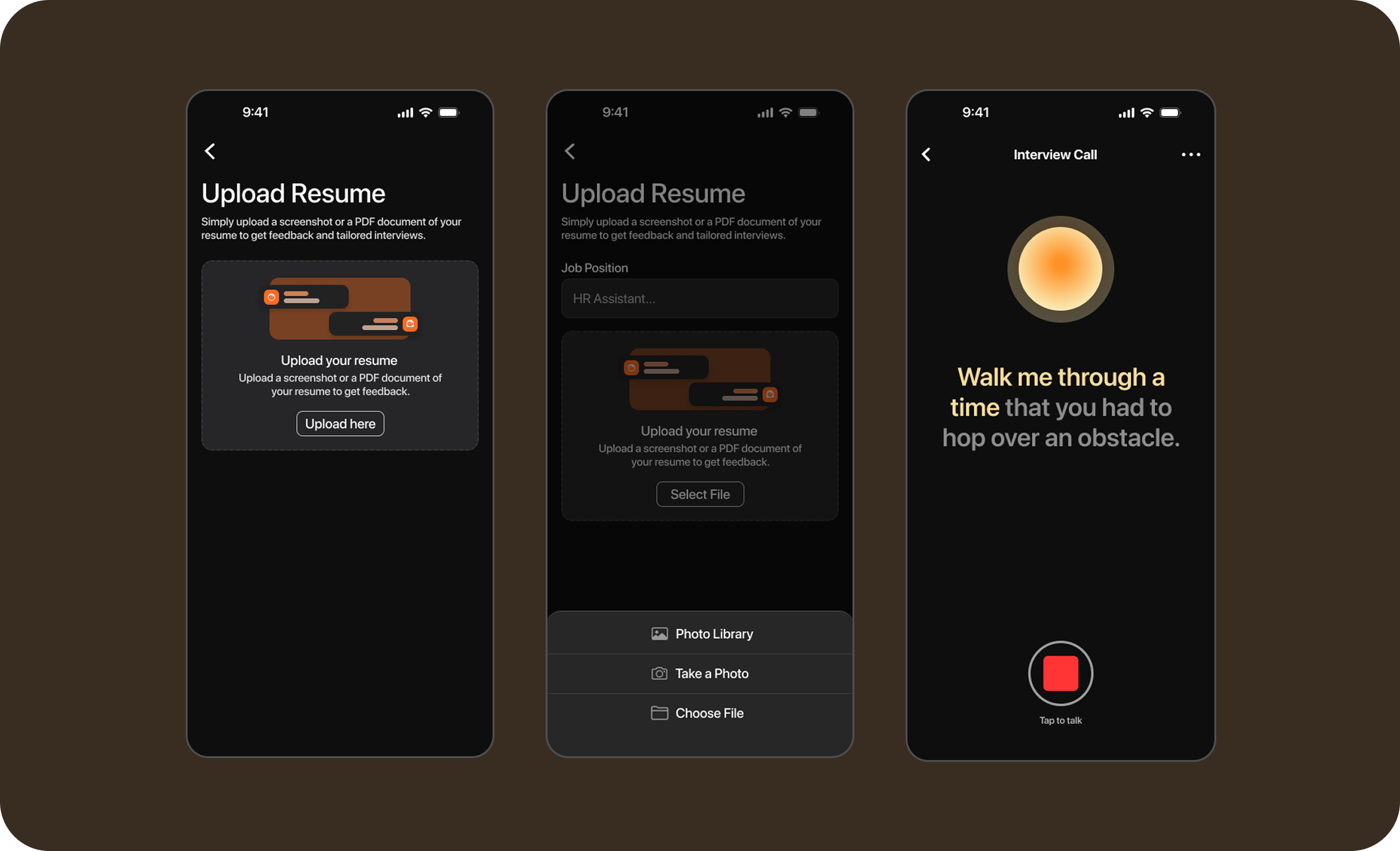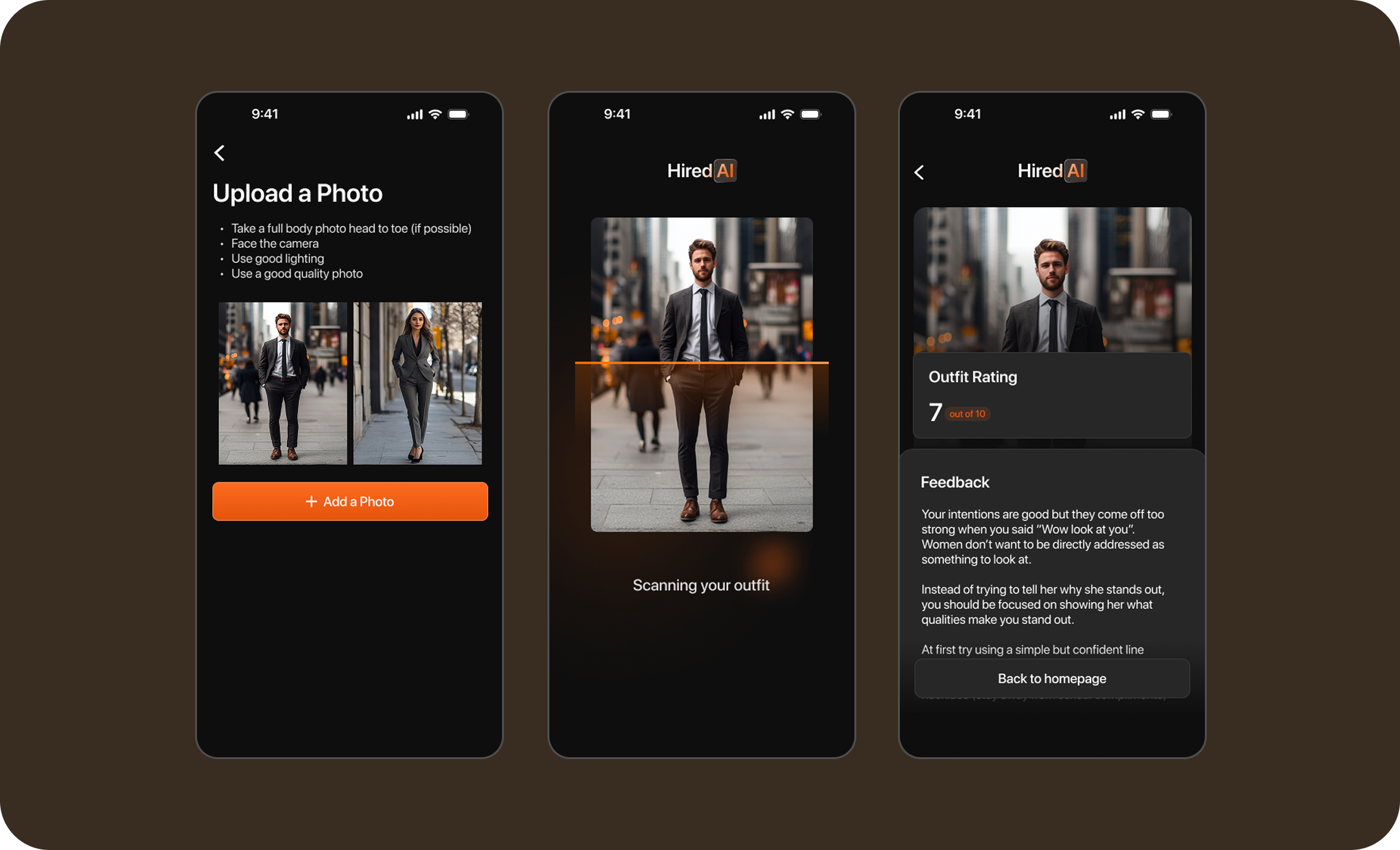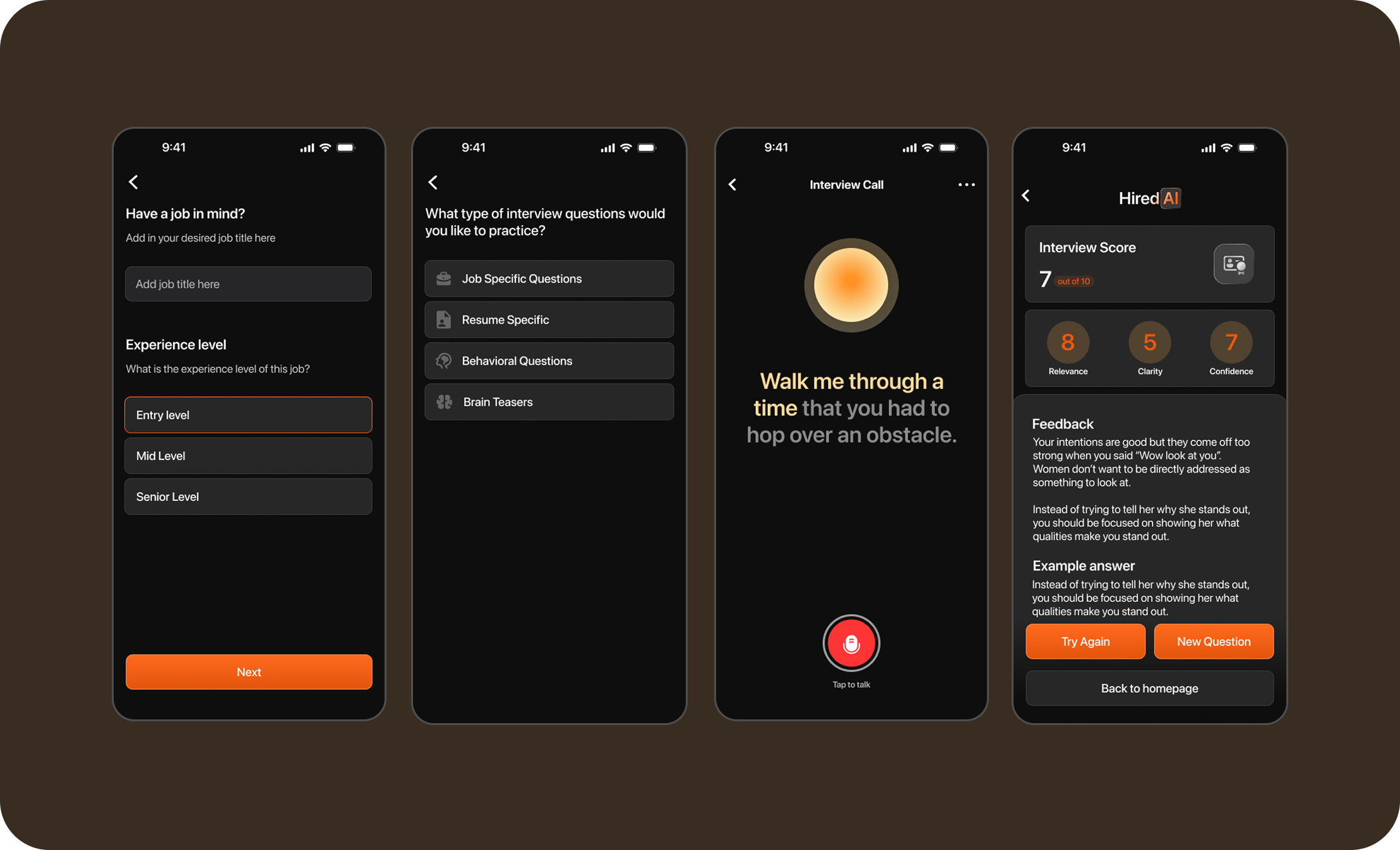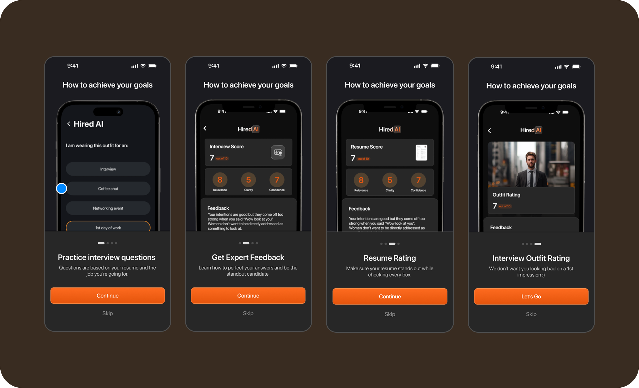 Hired AI mobile platform connecting users with job opportunities through intelligent matching systems.