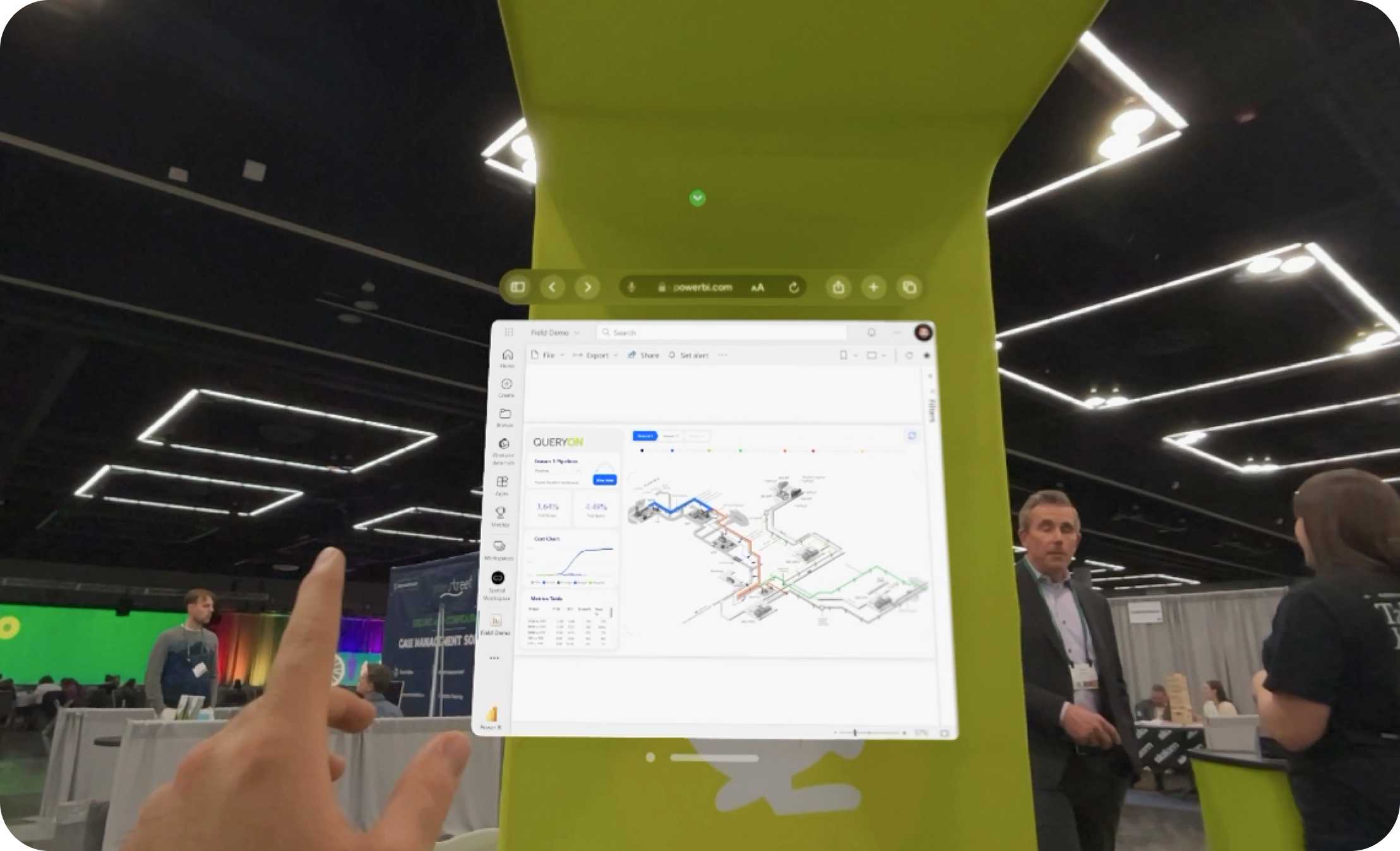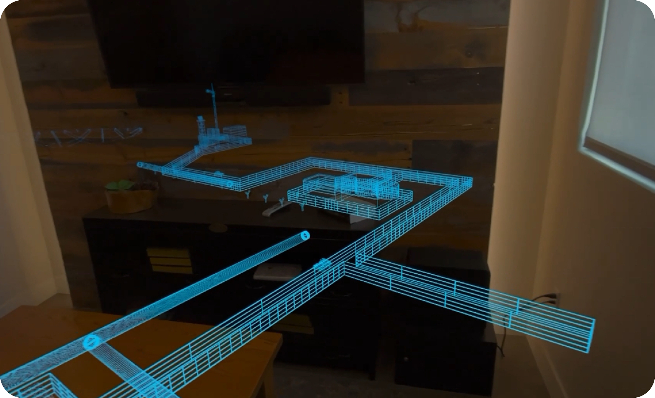 Confidential client immersive AR experience for visualizing live pipeline construction data in a spatial interface.